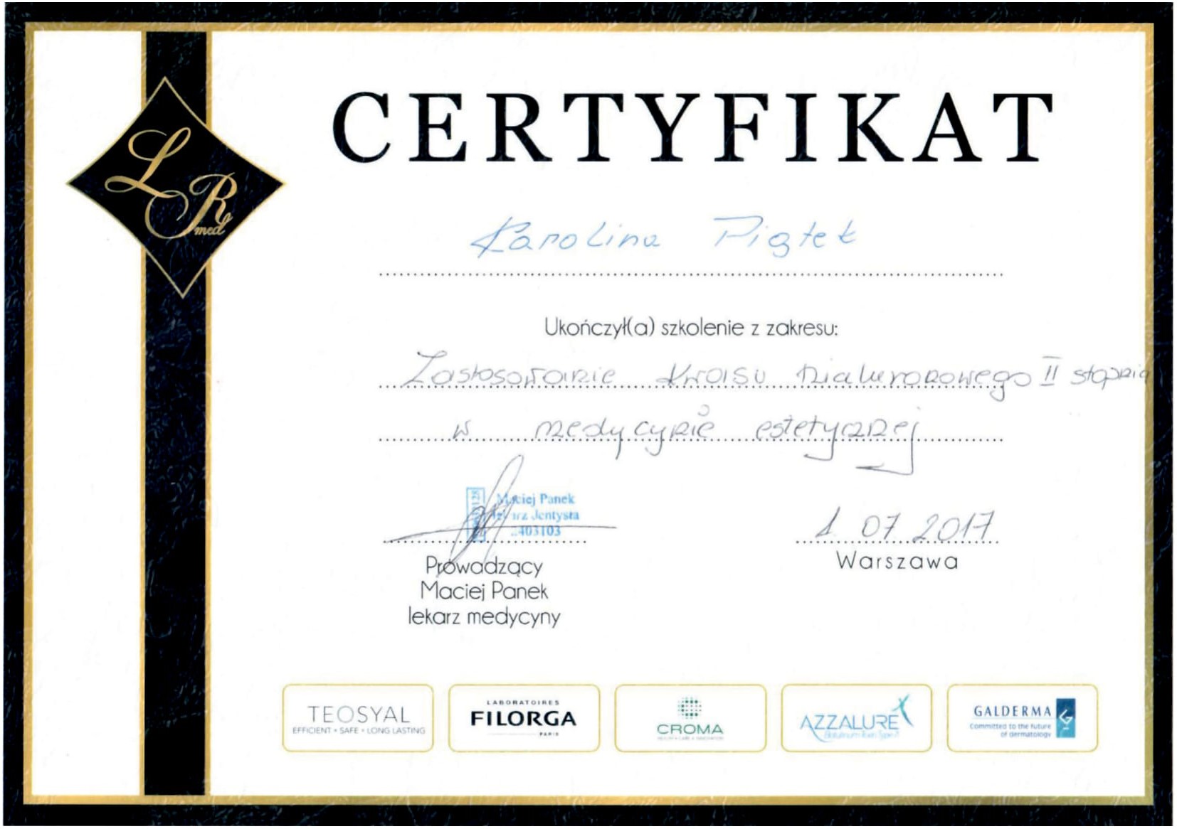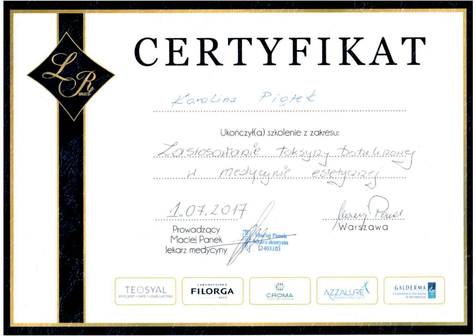 Nazywam się Karolina Piątek, specjalizuję się w medycynie estetycznej, makijażu okolicznościowym oraz kosmetologi. Fascynuje mnie medycyna estetyczna, niezwykle dynamicznie rozwijająca się dziedzina medycyny, która pozwala nam na długo zachować dobre zdrowie i wygląd.